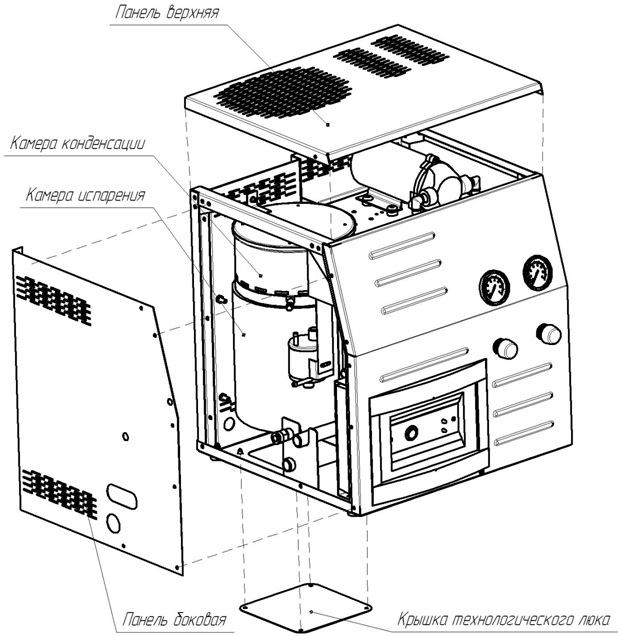 • металлический корпус из нержавеющей стали со съёмными панелями