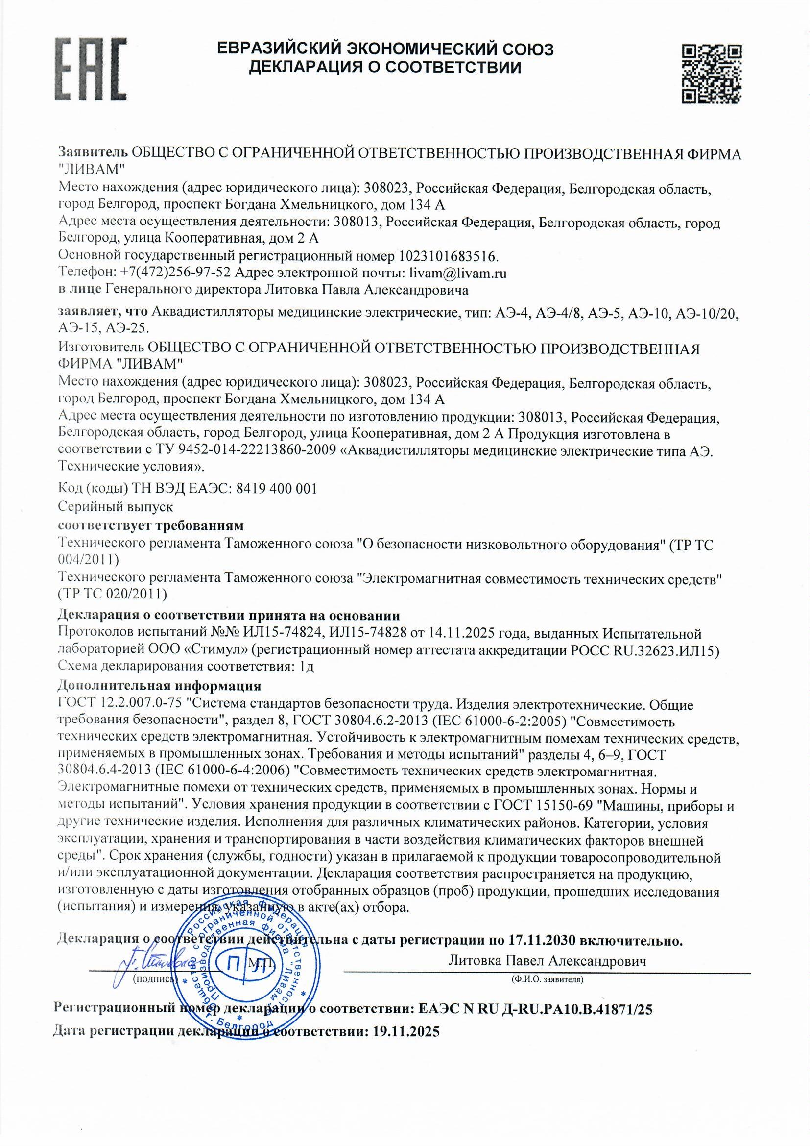 2026 © Дистиллятор, бидистиллятор ООО ПФ «Ливам»